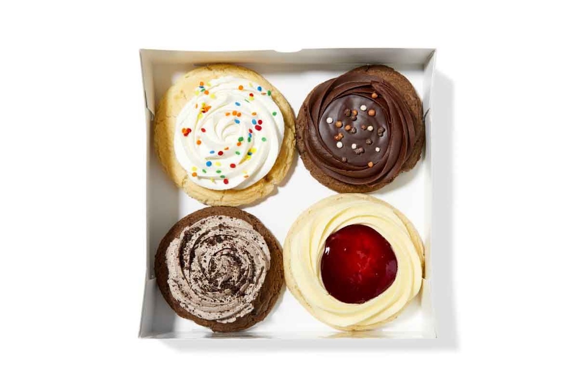 Each pack includes four oversized, bakery-style cookies, and every flavor has its own personality. The Chocolate Cookies & Cream with Double Chocolate Fudge is made for serious chocolate fans, starting with a rich chocolate cookies-and-cream base that’s soft in the center with a slight chew around the edges. It’s topped with a thick layer of double chocolate icing and finished with crunchy chocolate crispies that add texture to every bite.